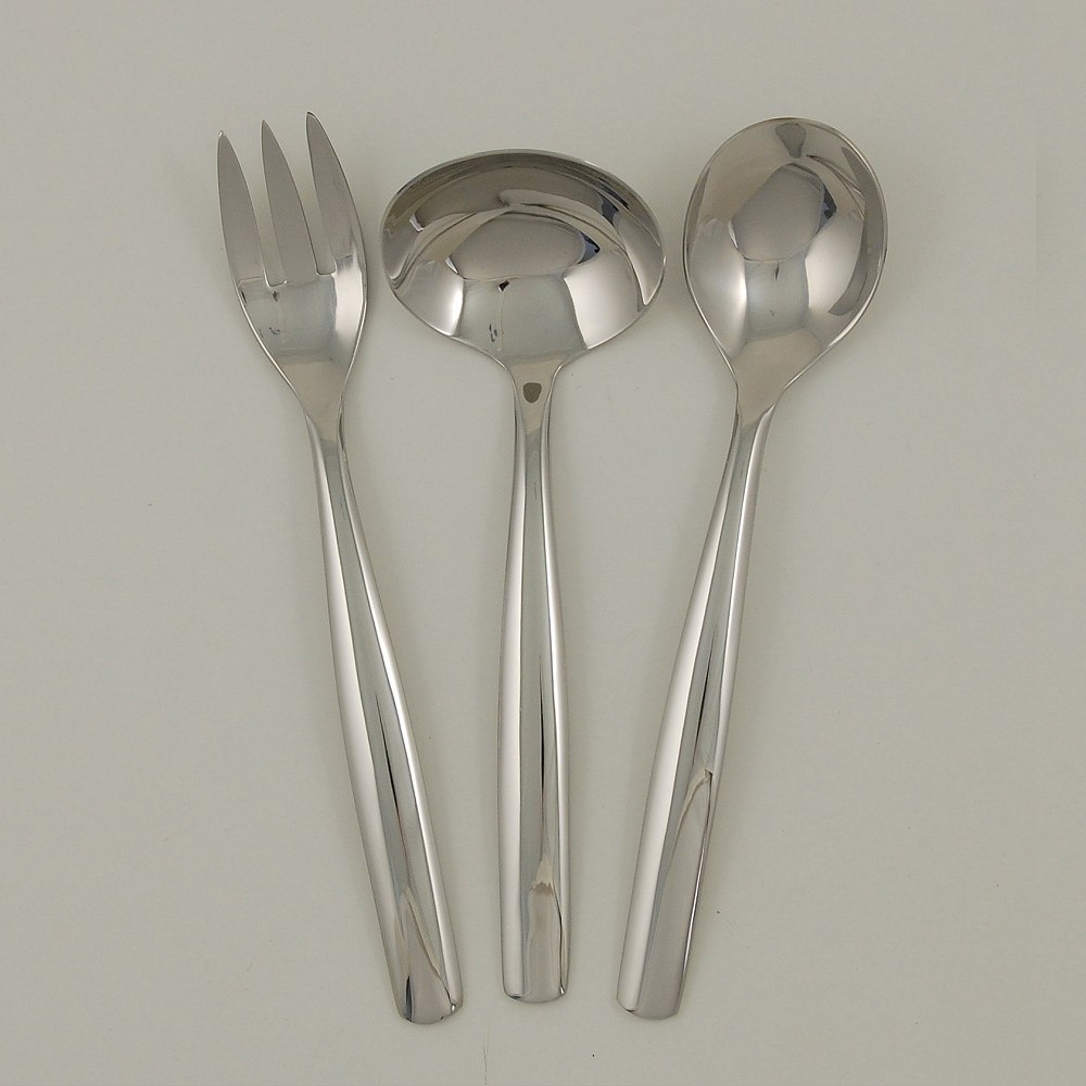 Charlie 3pc Hostess Set-18/10 heavy, stamped stainless steel. Contains: Serving Spon, Cold Meat Fork, and Sauce Ladle