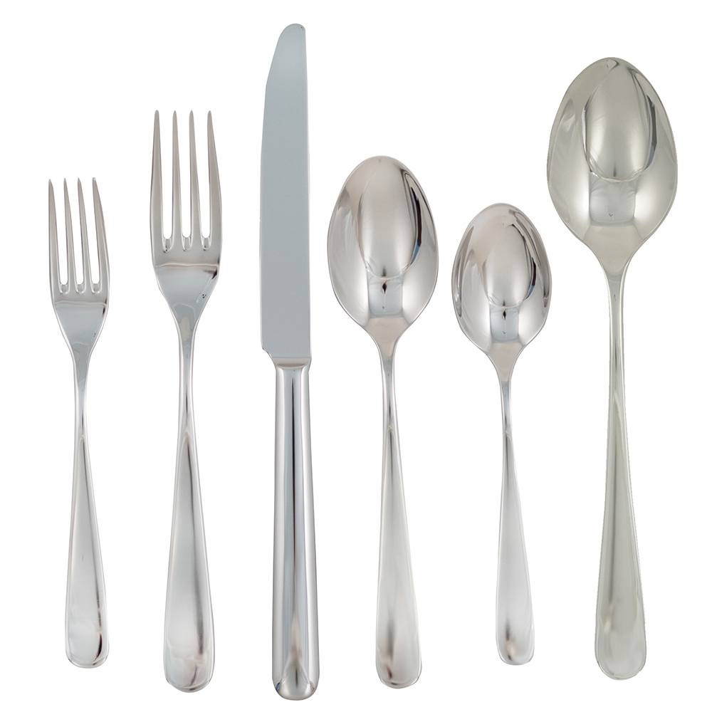 Millennium Mirror 42pc Set-18/10 Stainless with mono-block (solid) knives. 8 each: Dinner Knife, Dinner Fork, Dinner Spoon, Salad Fork, Teaspoon, and 2 Serving Spoons.