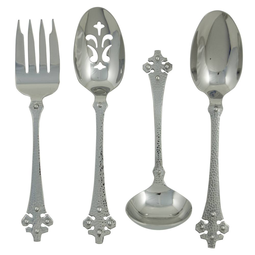Celtic 4pc Hostess Set-18/10 Stainless Steel. Set Contains: Serving Spoon, Meat Fork, Pierced Serving Spoon, Sauce Ladle