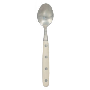 Lyon Ivory 5pc Set-18/10 casting of stainless steel, with POM plastic molded onto full tangs. 1 each: Dinner Knife, Dinner Fork, Dinner Spoon, Salad Fork, Teaspoon