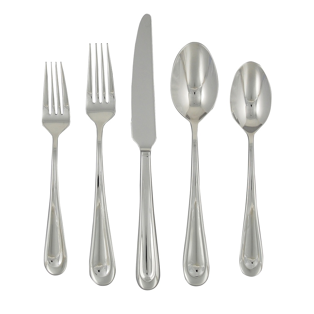 Corrie Stainless Flatware (18/0 Stainless Mirror Finish) Place Setting – 5 Pieces: Dinner Knife, Dinner Fork, Dinner Spoon, Salad Fork, Teaspoon