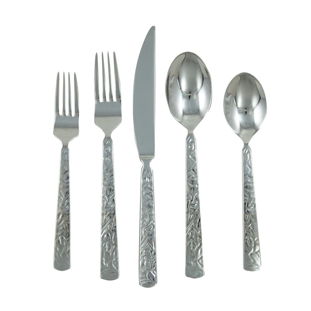 Mercury Stainless Flatware (18/0 Stainless Mirror Finish) Place Setting – 5 Pieces: Dinner Knife, Dinner Fork, Dinner Spoon, Salad Fork, Teaspoon