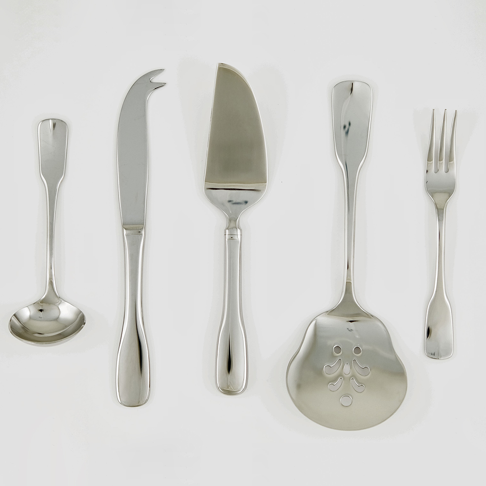 Alsace 5pc Serving Set-18/10 Stainless Contains 1 each:Tart Server, Mini Sauce Ladle, Citrus Fork, Cheese Knife, Buffet/Tomato Knife