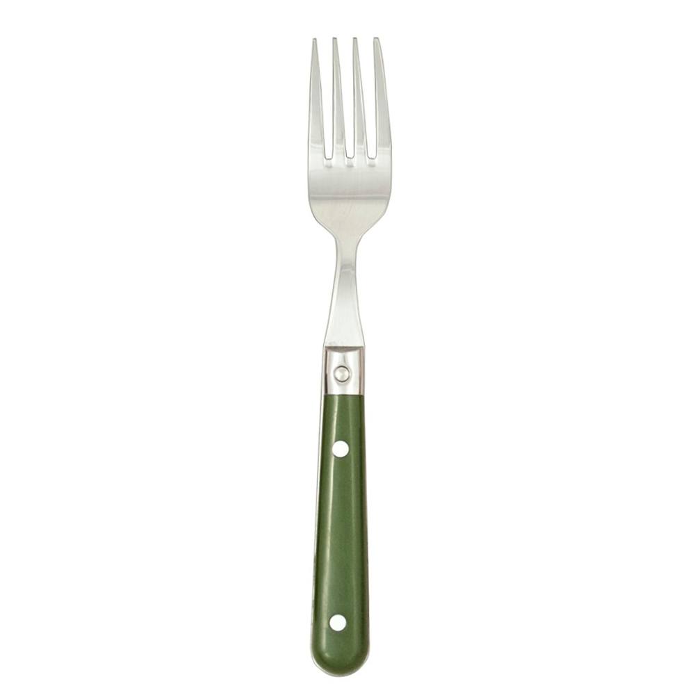 LePrix-Moss Green Dinner Fork-18/0, stamped stainless steel.