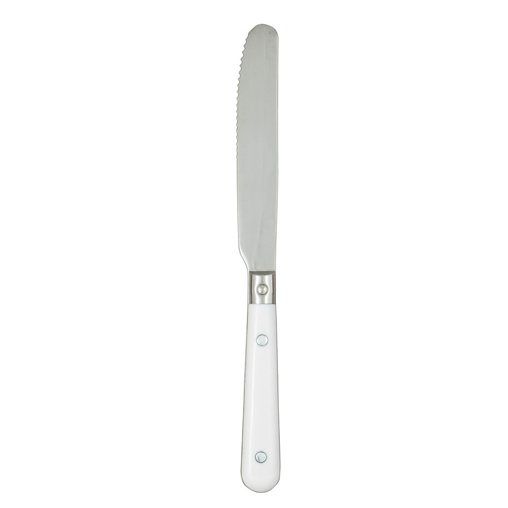 LePrix-White Dinner Knife-Solid 13 Chrome steel forged and tempered, serrated blade.