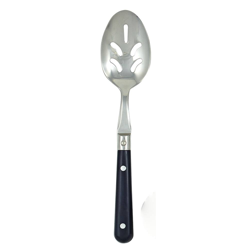 LePrix-Navy Blue Pierced Serving Spoon-18/0, stamped stainless steel.