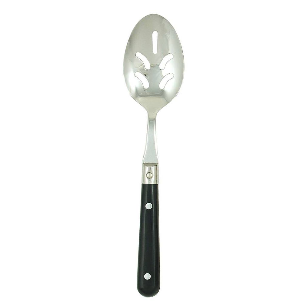 LePrix-Hunter Green Pierced Serving Spoon-18/0, stamped stainless steel.
