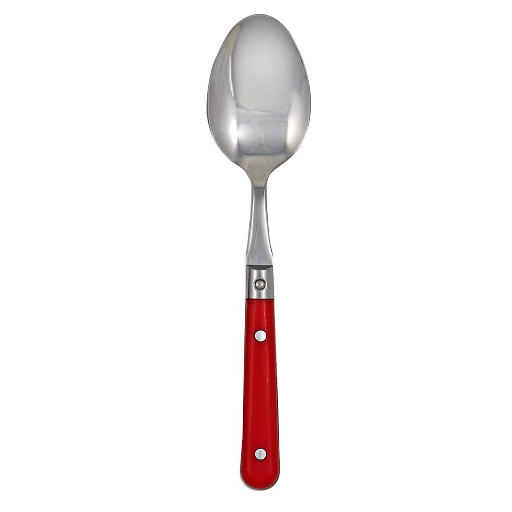 LePrix-Milano Red Serving Spoon-18/0, stamped stainless steel.